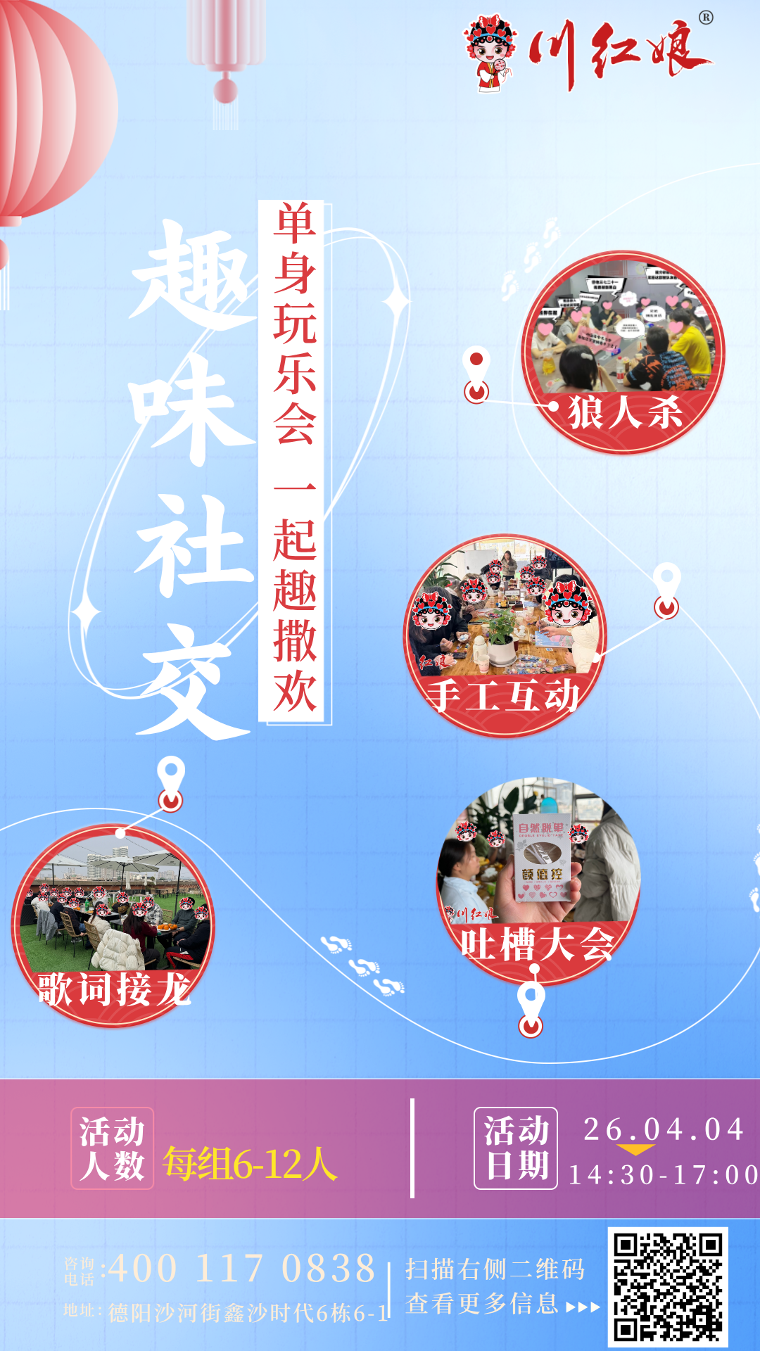 地点: 四川 德阳 旌阳区 鑫沙时代6栋6楼1号(川红娘生活聚场)